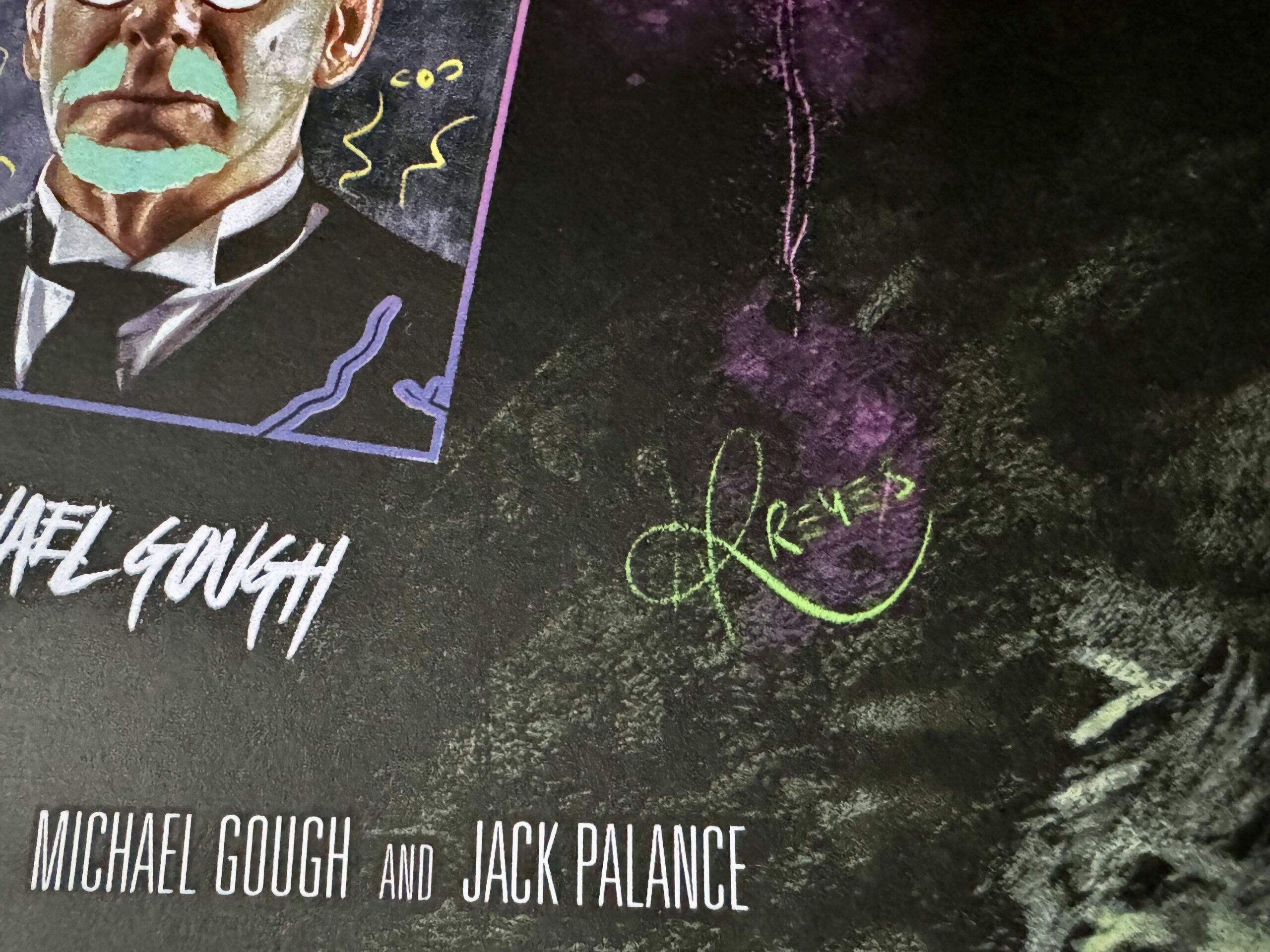 Tim Burton was the perfect choice at the time to re-invent this major screen character & for me this is the definitive Batman movie. Posters for Burton’s “Batman” have always been hugely collectable since it was released in 1989 with the original marketing campaign basically just using the Batman logo. This has left a huge scope for artists since, to re-imagine and re-interpret their own unique take on the movie and character – making it perfect content for the alternative movie poster market. Batman (in all of his guises) is one of the most popular subjects for commissions – admittedly some better than others. Offered here is one of the better examples as Alberto Reyes presents his variant edition. Known as the Joker style or the Jokerized version it sees Jack Nicholson’s Joker in a clever spin from one of the key scenes from the film. Enigmatic and stylish, hand-numbered (#69/89) and signed by the artist, Alberto Reyes is truly impressive. Originally rolled (as issued) this displays to excellent effect and represents a superb Joker image from one of the defining Batman films.
