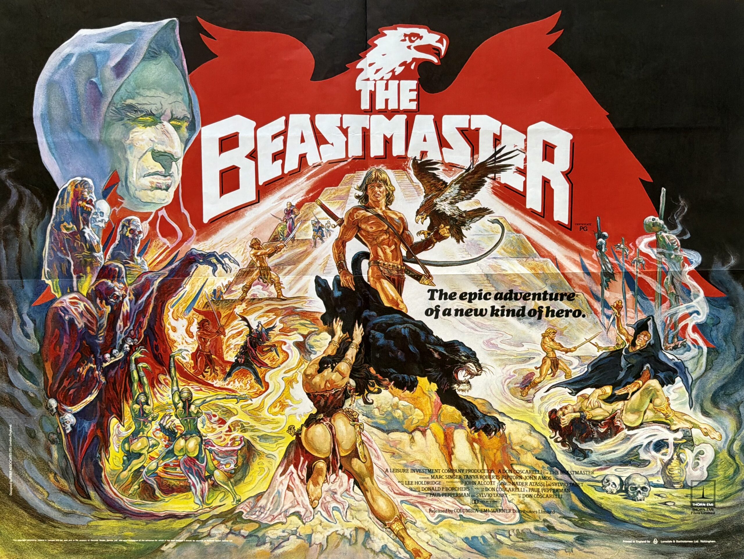 Largely due to the “Star Wars” effect and the huge global popularity of the “Dungeons & Dragons” role playing game, the 1980’s truly was the decade of the mystical sword and sorcery fantasy. Don Coscarelli’s “Beastmaster” has stood the test of time well and is fondly remembered with a large and loyal fanbase. Boasting some of the best fantasy art seen on a movie poster by the advertising agency FEREF (Eddie Paul) with finished art byJosh Kirby this original 1982 UK quad for “Beastmaster” certainly impresses. Scarce and hard to find in this high grade condition, this originally folded (as issued) example looks fantastic and presents in exceptional condition that represents a fine piece of hugely collectable original 80’s sci-fi fantasy movie memorabilia.