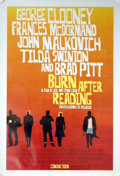 …An original 2008 Advance “Coming Soon” Country of Origin US One Sheet movie poster for the comedy, crime drama “Burn After Reading”…A great looking poster by design studio Mojo, LLC that is genuinely very, very rare.