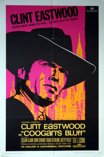 “Clint Eastwood gives New York 24 hours… to get out of town!”…A truly stunning original 1968 US One Sheet movie poster for Clint Eastwood’s cowboy in the big city movie “Coogan’s Bluff”. Very much a blueprint for many of Eastwood’s later roles. A very rare and ultra-cool looking film poster.