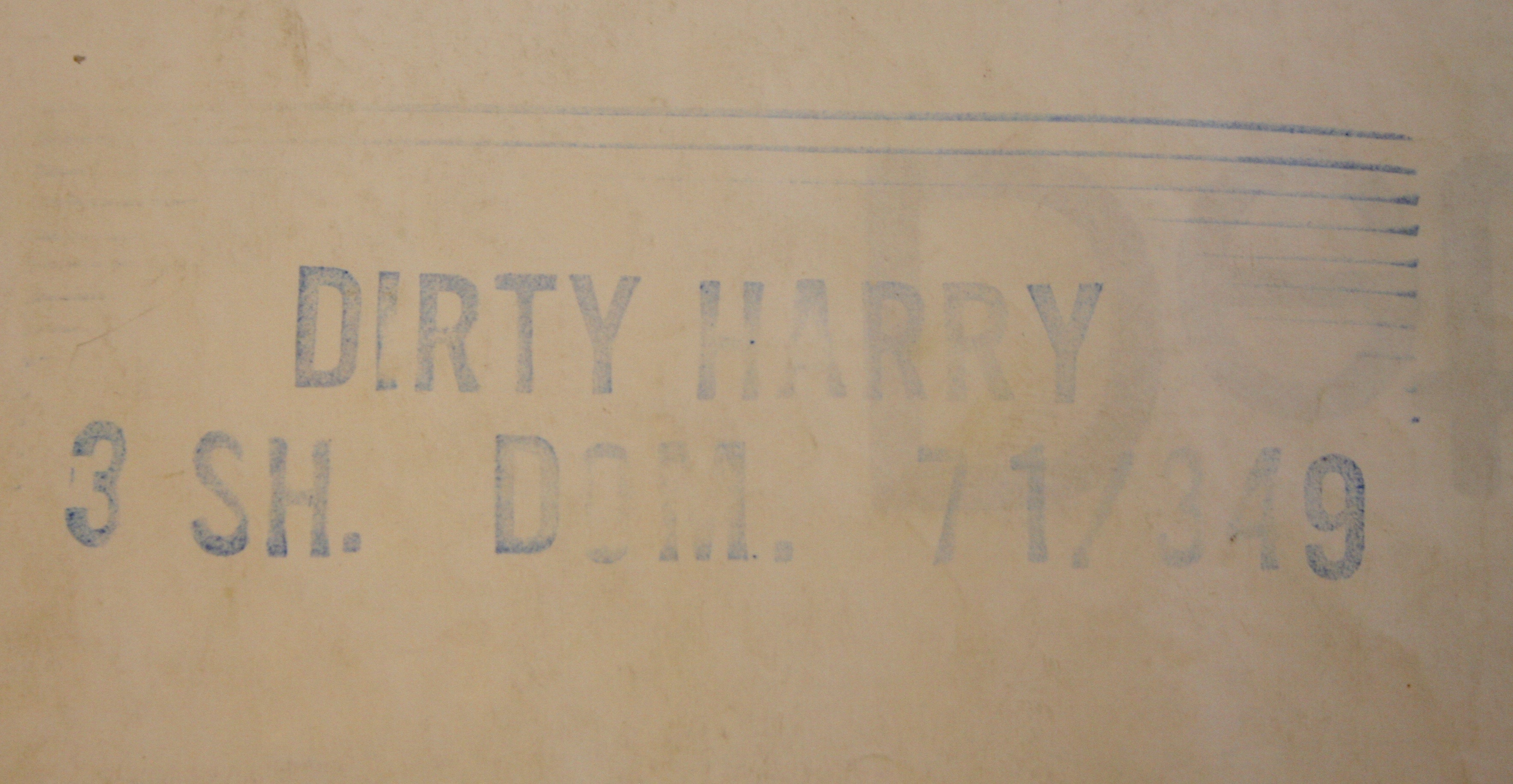 The ultimate “Dirty Harry” movie poster and extremely rare when compared to other paper from the title. This outstanding original US Three Sheet movie poster is from first year of release 1971, with unique ‘Clint’ imagery only used on this version. A true country of origin (US) example this poster was stamped “DOM” which means it was printed for use within the United States (there would also have been posters stamped “FOR” for use outside the United States). Also note that this three-sheet was printed in one section….Originally folded (as issued) this unrestored, totally original piece presents very well; the white background is a bright white and the colours, deep & unfaded. There is some very minor age and handling wear but it really does present superbly and if linen backed (with minimal restoration) would provide one of the best examples out there…Clint Eastwood carved out a violent niche in the cinema with his portrayal of ‘Dirty Harry Callahan’ in this, the first in the popular series about a San Francisco detective who makes his own rules and this extremely scarce US three sheet movie poster represents a fine piece of very collectable and desirable original film memorabilia.
