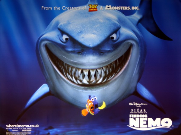 “Jaws Will Drop.”…Impressive, eye catching artwork on this original 2003 UK Quad movie poster for Pixar Studios’ Oscar winning animated romp “Finding Nemo”. Originally rolled this looks fantastic with its “Big Shark” imagery…Absolutely stunning…a real talking piece !