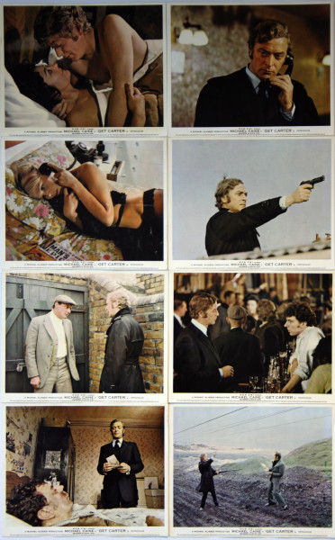“You know, I’d almost forgotten what your eyes looked like. Still the same. Pissholes in the snow”…These are RARE, a full set of 8 UK (Country of Origin) Front of House lobby cards for Mike Hodges’ gritty British gangster thriller “Get Carter”. From first year of release 1971 Michael Caine (The titular Jack Carter) in his most iconic role features in seven of the cards with the eigth card being an incredibly sexy Britt Ekland lounging around in black lacy lingerie ! Unfolded, flat as issued this really is a special set…Very scarce movie collectable…”You’re a big man, but you’re in bad shape. With me it’s a full time job. Now behave yourself”
