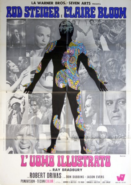 “Don’t dare stare at the illustrated man.”…A extremely rare 1969 original Italian 2-Folio movie poster…Fantastic artwork and design by Renato Ferrini with an almost almost psychedelic illustration on a background of black and montages from the film..A really striking poster !