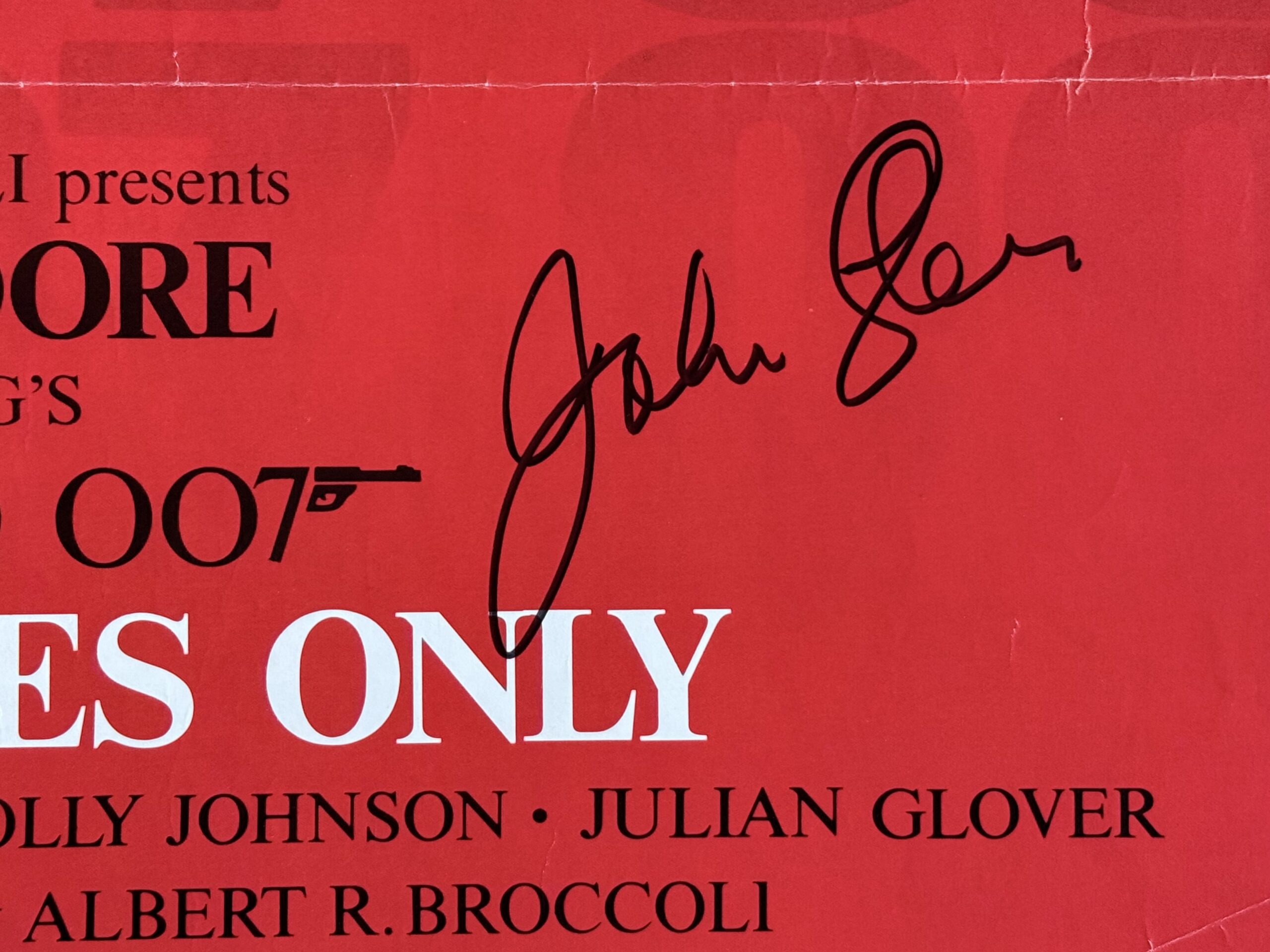 After the ‘Star Wars’ style excesses of the previous movie “Moonraker” this is more of a return to a realistic spy thriller in John Glen’s “For Your Eyes Only” and it is director John Glen who has personally signed this poster – a lovely clear signature in black pen on the red background above the title. This original US one sheet is from first year of release 1981 featuring iconic artwork that incorporates the “legs” aspect of Bill Gold’s design and Brian Bysouth’s finished artwork. There is no doubting that this originally folded (as issued) example displays very well and is probably the most recognisable of all the Roger Moore, Bond posters and represents an impressive example of original collectable James Bond movie memorabilia.