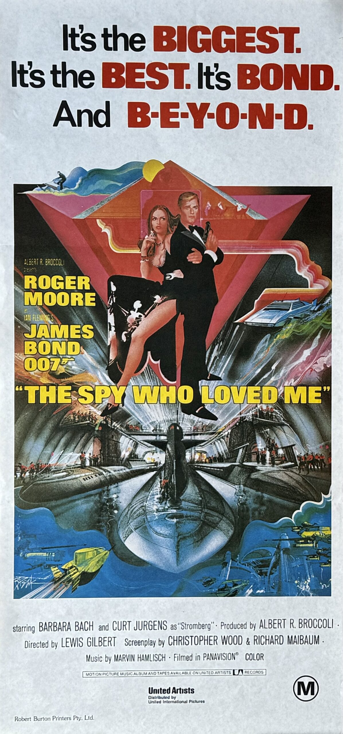A superb original, Australian daybill film poster for Lewis Gilbert’s 1977 James Bond extravaganza…“The Spy Who Loved Me”…Cubby Broccoli wanted this to be “BIGGEST Bond of All” and it certainly lived up to the billing, from the massive purpose built 007 soundstage at Pinewood (still very much in use today) to the marketing campaign which was the first time to feature the talents of movie poster legend Bob Peak. His colourful, detailed imagery followed an art-nouveau style in a futuristic setting and very much set the film’s tone. This excellent unrestored originally tri-folded (as issued) example presents and displays superbly and is one of the best formats for displaying this artwork. This beautiful film poster represents a fine piece of very collectable James Bond movie memorabilia.