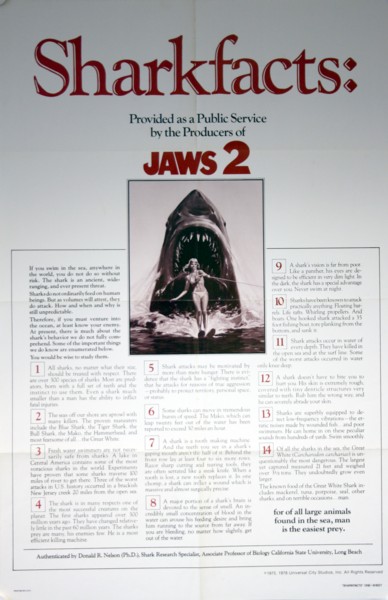 These “Sharkfacts” posters are becoming increasingly vey hard to find Genuinely scarce and extremely sought after by collectors The exceptional high grade condition of this piece makes it even more desirable
