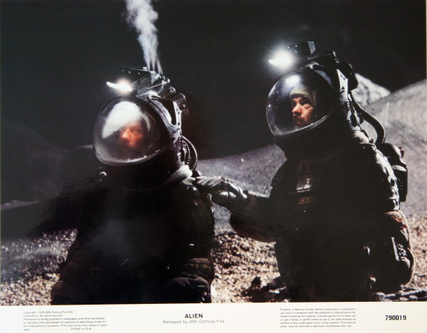 “Molecular acid ?…It must be using it for blood”…Great close up of Kane (John Hurt) and Dallas (Tom Skerrit), the first and second victims of the titular alien. This original 1979 US lobby card for Ridley Scott’s xenomorph horror “Alien” looks fantastic; unrestored with deep vibrant colour and a high gloss finish…Cards of this calibre from this landmark science fiction film are incredibly rare…investment grade quality from a classic of the genre.
