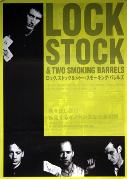 “A Disgrace to Criminals Everywhere.”…Extremely rare original 1998 Japan One Sheet film poster for Guy Ritchie’s breakthrough movie…”Lock Stock, and Two Smoking Barrels”…A very limited initial UK and Worlwide release means that any “Lock Stock” posters are extremely rare and have become very sought after as the movie has gone on to become of the most influential British films of recent years, launching the careers of its stars and director. This example featuring different artwork to the UK and US releases looks magnificent and displays very well.