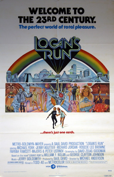 “The only thing you can’t have in this perfect world of total pleasure is your 30th birthday…Logan is 29″…Fantastic depiction of the 23rd Century with design by Bemis Balkind and some polished artwork by Charles Moll for this original 1976 US One Sheet movie poster for Michael Anderson’s sci-fi adventure “Logan’s Run”. Originally folded this rare poster displays very well. Nice deep colour with some of the best artwork from the 70’s.