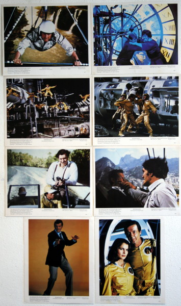 “Outer space now belongs to James Bond 007″…At the time of its release in 1979 the “Star Wars” inspired Bond movie “Moonraker” was the largest grossing 007 movie to date. This is an incredibly rare set of 8 alternative design US Lobby Cards for the Film. Each card measures 8″ x 10″ with two of the cards portrait style featuring cast photos and the remaining six, landscape format showing action scenes from the movie. Published in New York by Fenited and in exceptional condition this very rare set would greatly enhance any 007 James Bond collection.