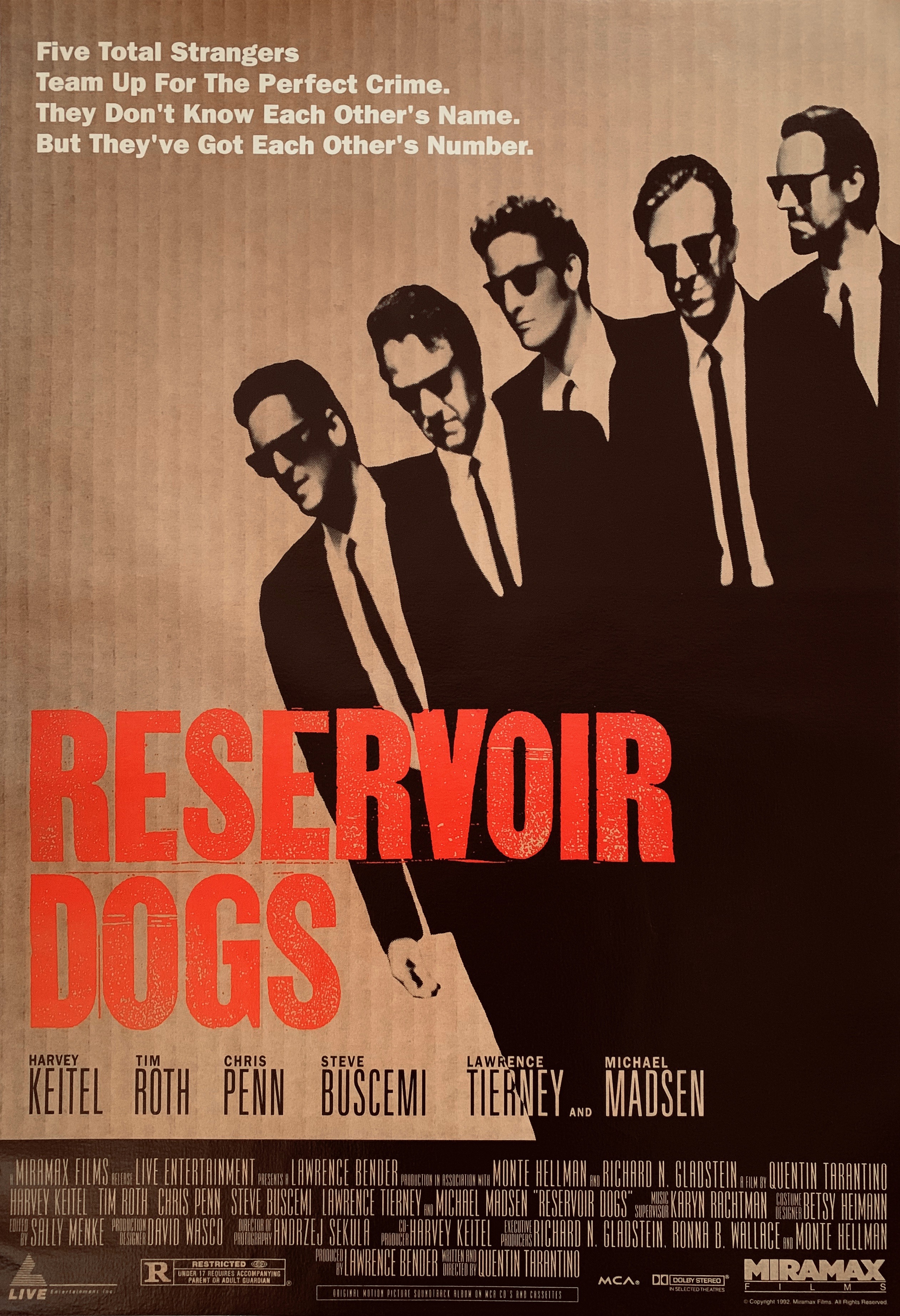 Quentin Tarantino, Chris Penn, Eddie Bunker, Harvey Keitel, Lawrence Tierney, Michael Madsen, Steve Buscemi, Tim Roth