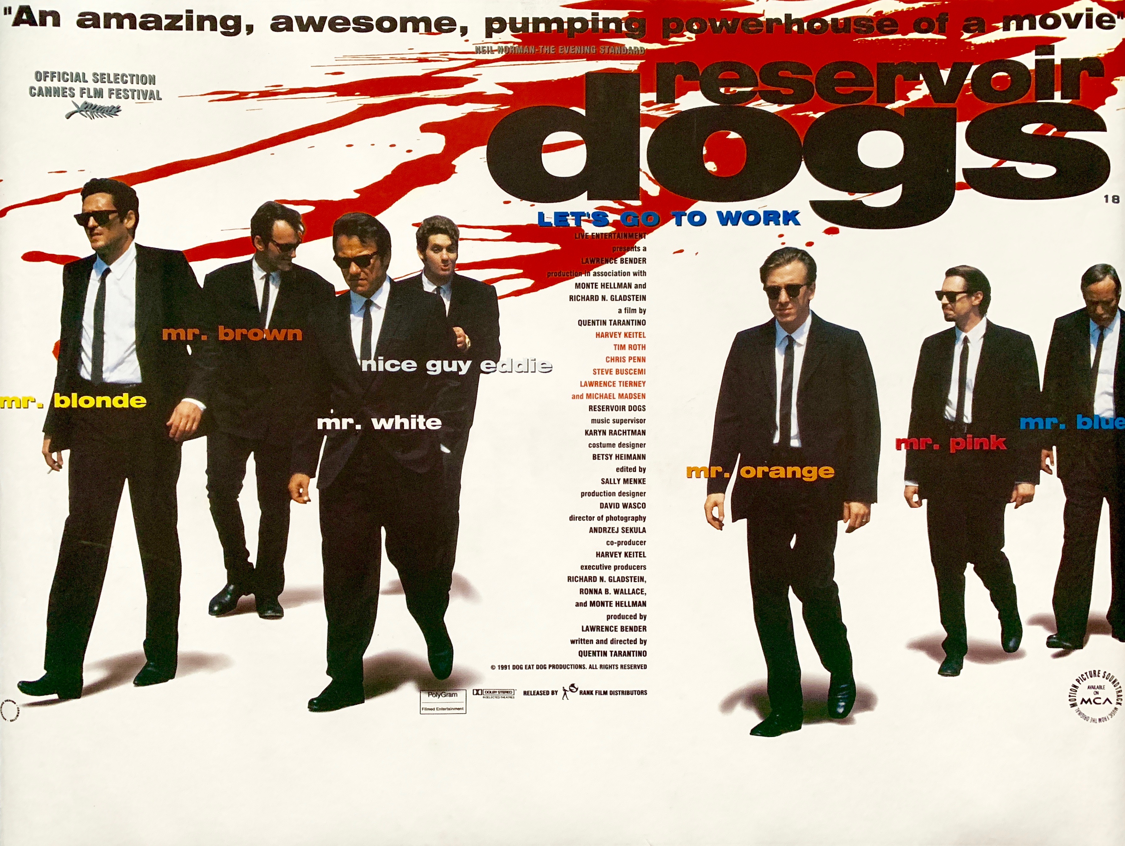 “Reservoir Dogs” has become a classic of independent film making and a cult classic being named “Greatest Independent Film of all Time” by highly respected film magazine, Empire. This unique British ‘Let’s go to work’ imagery featured here has become synonymous with the title and gone on to become instantly recognisable and one of the most popular cult images of all time. From first year of release 1992 this rolled (as issued) British UK quad displays and presents to excellent effect and benefits from being totally original & unrestored. Tarantino paper is particularly sought after and this scarce poster represents a fantastic opportunity to obtain a truly high grade item of collectible original film poster memorabilia.