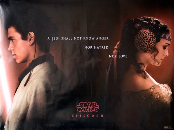 “A Jedi Shall Not Know Anger. Nor Hatred. Nor Love.”…An original 2002 Advance UK Quad movie poster. Extremely rare Version A. The first glimpse of Anakin (Darth Vader) as a young adult with his future bride to be Senator Padme Amidala.