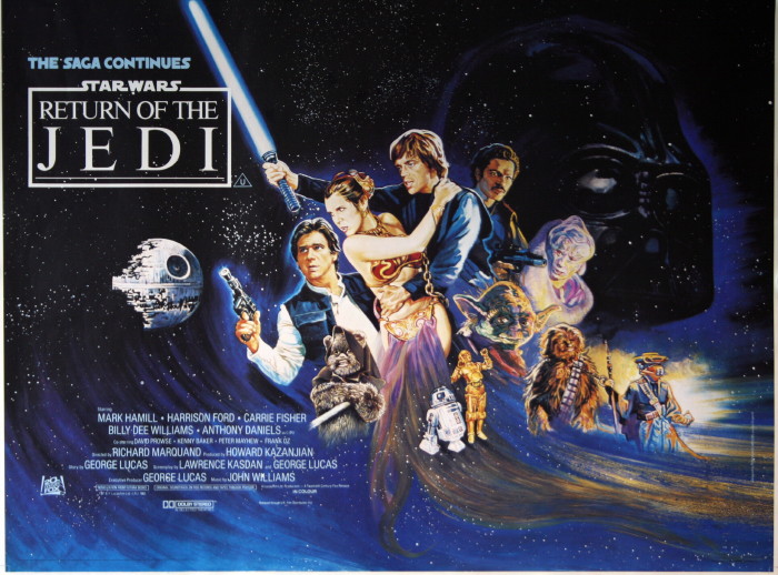 “The Empire Falls”…With an updated design by Feref Associates based upon Josh Kirby’s original artwork for the 1983 British release of “Return of the Jedi”. This revised second version was produced to be more in keeping with the US campaign by Kazu Sano and now features the Ewoks. Not only extremely desirable and very rare, but the example offered here is an untrimmed, printers proof that doesn’t appear to have been used; it really is superb…Totally original and unrestored ROLLED (as issued) condition…A very rare example of original Star Wars movie memorabilia that is easily the finest example I have had the pleasure of offering for sale from what was until recently the “last” true Star Wars movie produced.