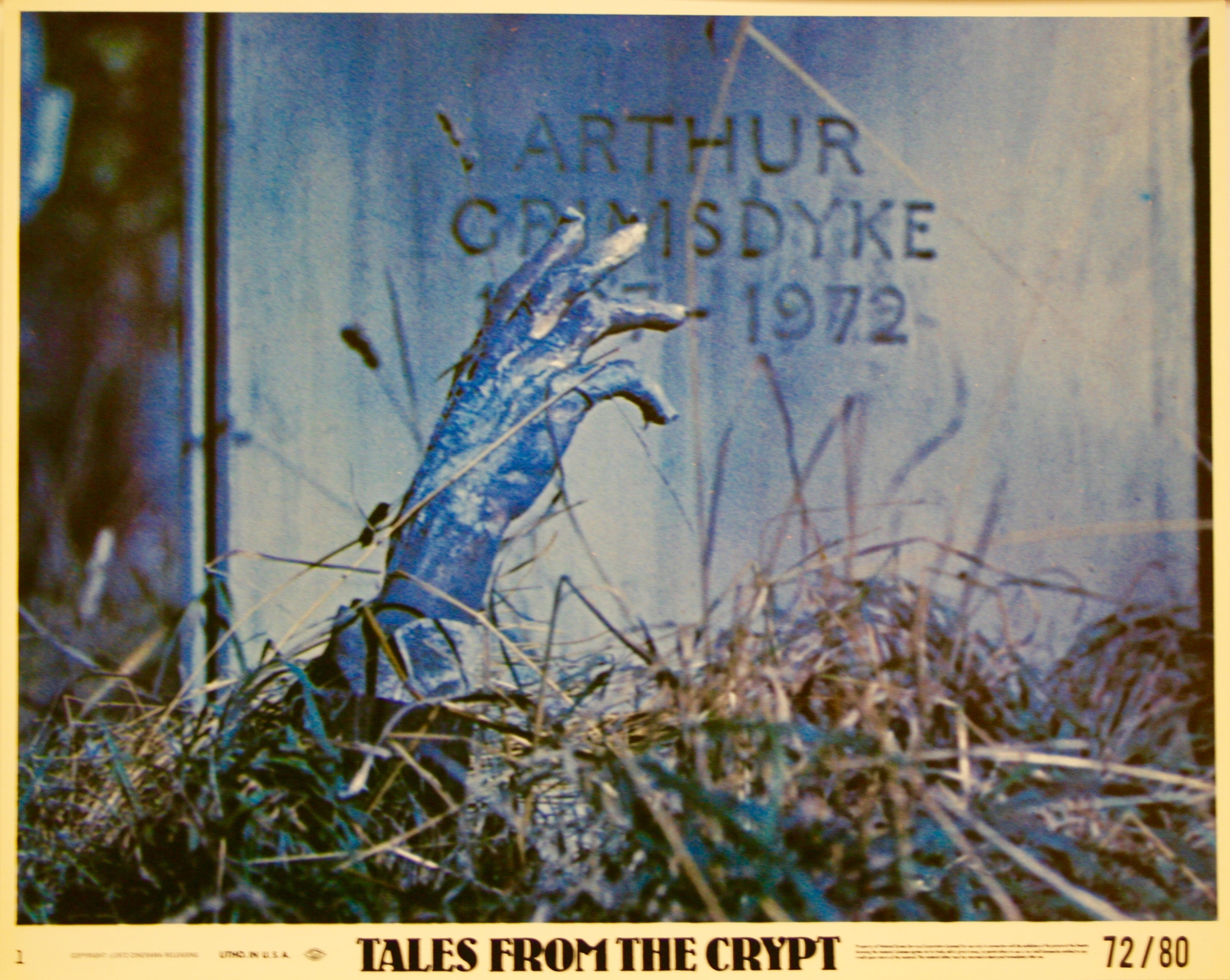 The Amicus horror anthology “Tales From The Crypt” was based on the EC comic book series of the 1950’s with the same name, which spawned several subsequent movies (and many imitators), at least one television series, and a whole new wave of comic books. Released in 1972, this movie has five episodes based on Gaines’ stories, each introduced by Sir Ralph Richardson as the eerily cheery Crypt Keeper. His comedic approach to the role was misunderstood at the time, as reviewers expected a more solemn approach to horror. In “All Through the House” Santa Claus is someone to avoid. In “Reflection of Death” it takes some people a while to realize the truth about themselves. In “Poetic Justice” death cannot prevent one man’s revenge. The episode “Blind Alley” demonstrates a new use for razor blades. “Wish You Were Here” cautions against taking native artifacts lightly. Among the stars featured are Peter Cushing, Joan Collins and Patrick Magee. Without doubt one of the most impressive horror films of its type. This full set of 8 original 1969 US front of house lobby cards is really a great find; lobby cards and paper from this film are extremely scarce. With some great horror scene cards this makes for a exceptional set that displays extremely well and is presented in excellent condition and represents hugely desirable, collectable original horror film memorabilia.