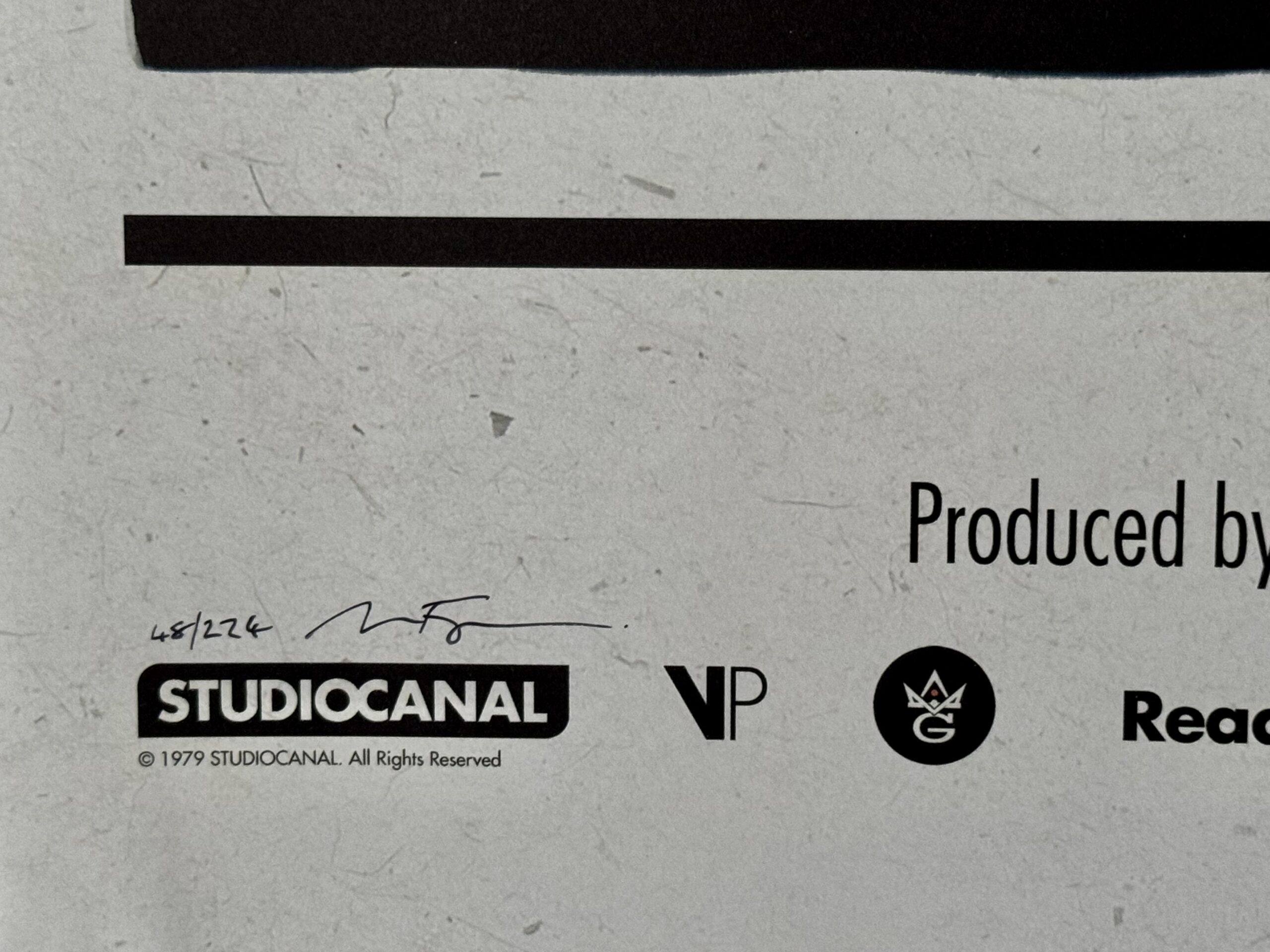 After the huge success of “Halloween” John Carpenter quickly followed up with the equally memorable horror “The Fog” – a guilty pleasure film of mine as I love how well Carpenter develops the tension and tells the story with great cinematography, sound, and use of locations. Carpenter always a well regarded and popular film maker has enjoyed a huge renaissance in more recent years so it was no surprise that this title was one of four seminal movies by the director re-released by Studio Canal in 2018, remastered in 4K, with the others being “They Live”, “Escape From New York” and “Prince of Darkness”. All four movies had a strictly limited cinematic release and were accompanied a newly designed poster campaign (quads and one-sheets) by leading artist Matt Ferguson. Ferguson’s unique artistic style is evident throughout the four, each with its very own unique colour palette. A number of these full-size 30″ x 40″ UK quad styles were also released as a limited edition art print by Vice Press. Identical to the cinematic quad, in fact exactly the same – same paper, printer etc these were issued as timed releases each signed and hand-numbered by Matt Ferguson. Offered here is one of these signed art prints numbered #48 from a print run of only 224. Originally rolled (as issued) it presents in excellent condition. A cool, cult poster that represents very collectable & desirable original film memorabilia from one of the greatest and most influential director’s who is still actively working in the film industry.
