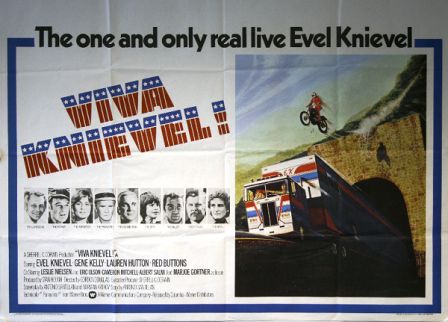 “The one and only real live Evel Knievel in his first dramatic movie role”…A very rare original UK Quad movie poster from the original year of release 1977 for “Viva Knievel”. Featuring fantastic Country unique (UK) action artwork of the legend Evel Knievel in full on stunt action mode. Originally folded this example really does display very well and looks stunning with great colours.